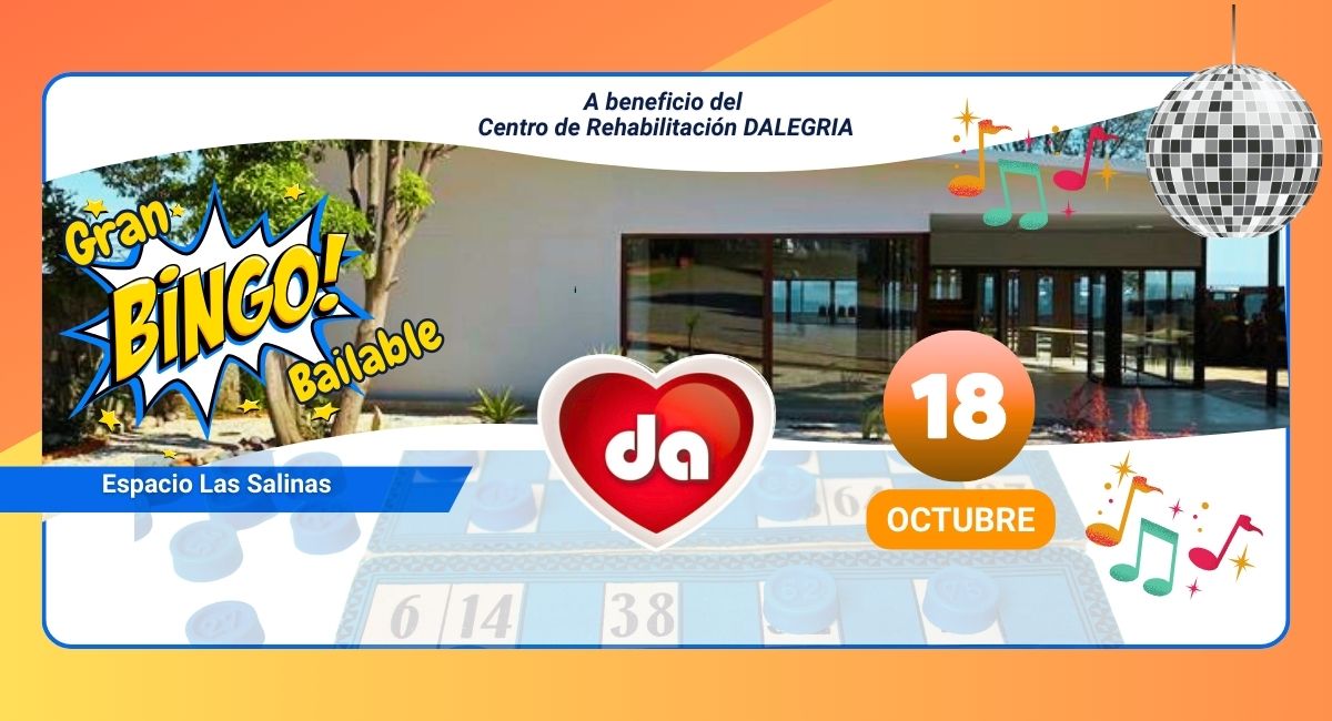 Con motivo del año de celebración de su 50° aniversario, el Centro de Rehabilitación DALEGRIA, invita a toda la comunidad a participar en un entretenido Bingo Bailable, que se realizará el próximo sábado 18 de octubre en horario PM.
